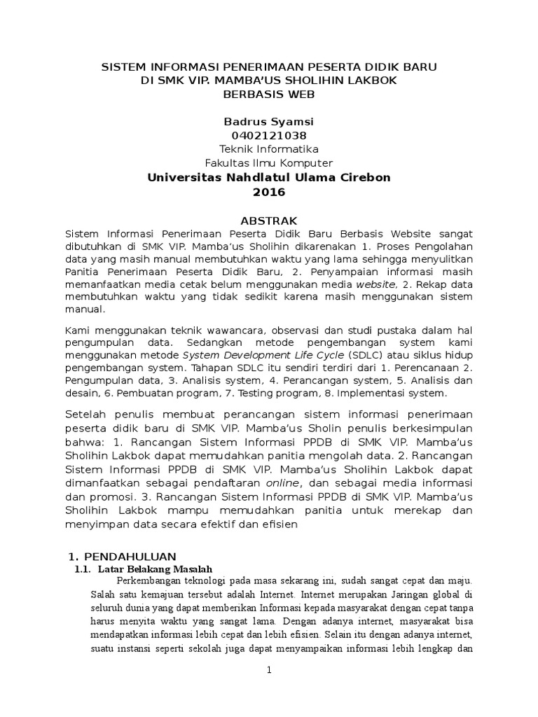 Jurnal Skripsi Sistem Informasi Ppdb Di Smk Vip Mamba Us Sholihin Berbasis Web Pdf